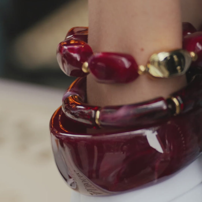 Le bracelet Chiara affiche une teinte rouge intense, adoucie par un effet marbré subtil.Sa forme large et lisse en fait...